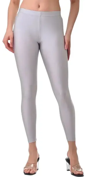 Ankle Length Western Wear Legging (Silver, Self Design)